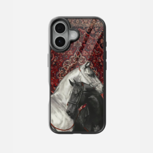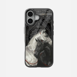 Two Horses Black Carpet Glass Case
