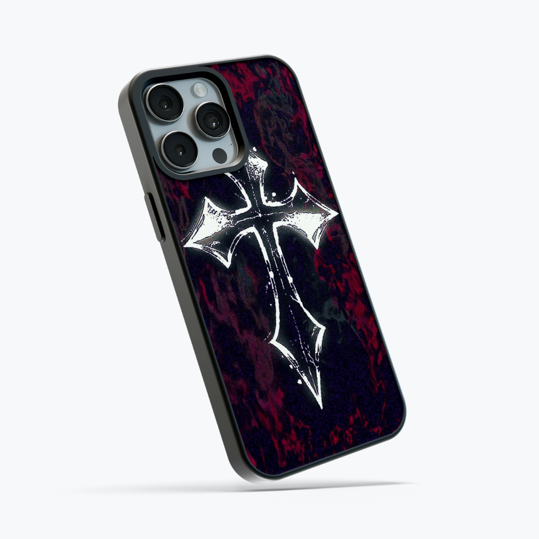 Flaming Cross Dark Glass Case