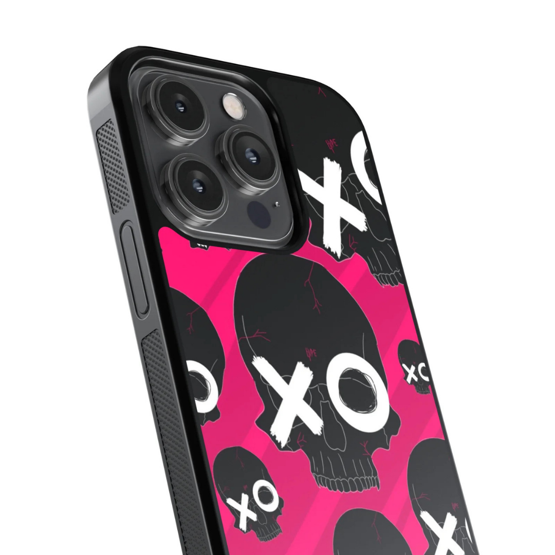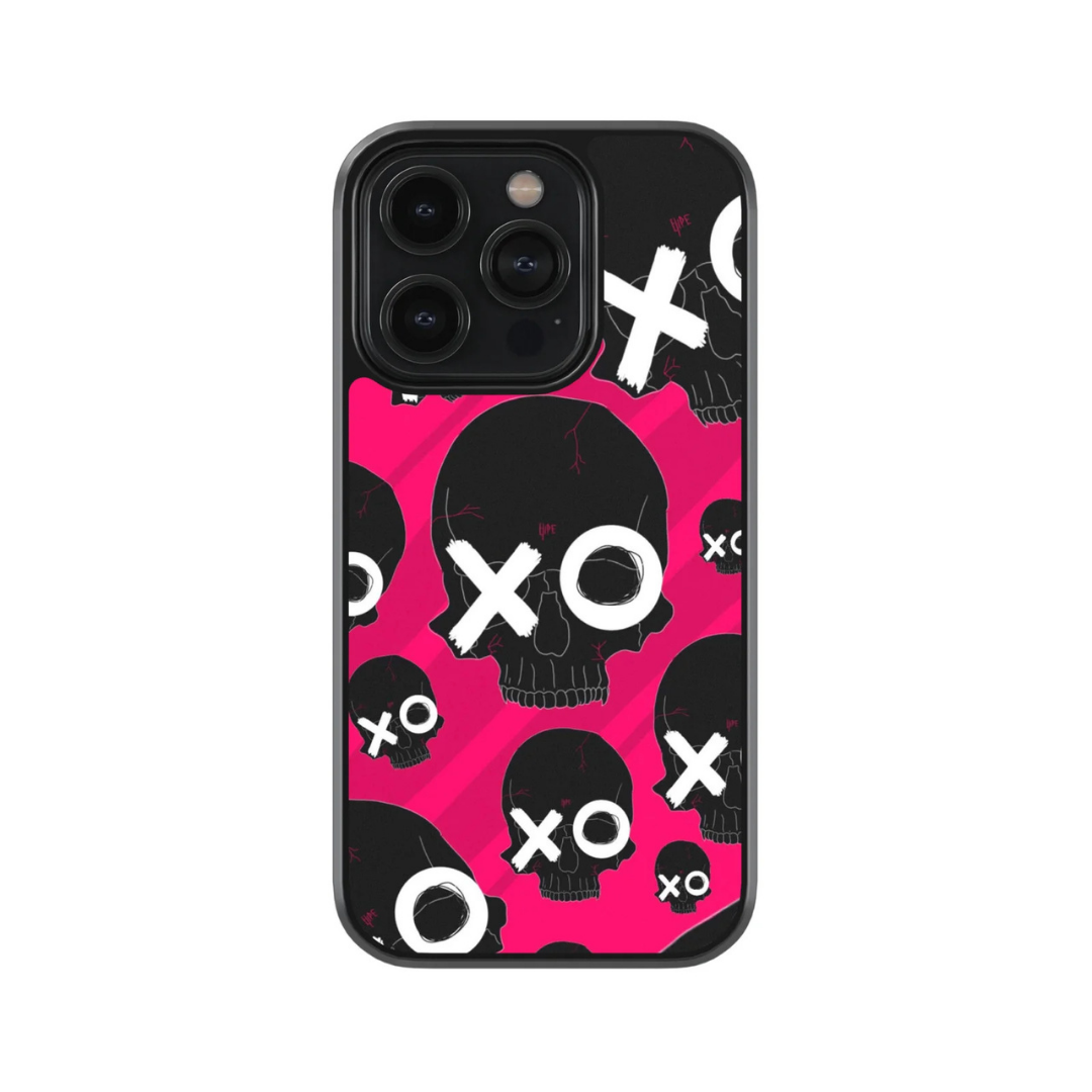 Pink Skull XO Pattern Glass Case