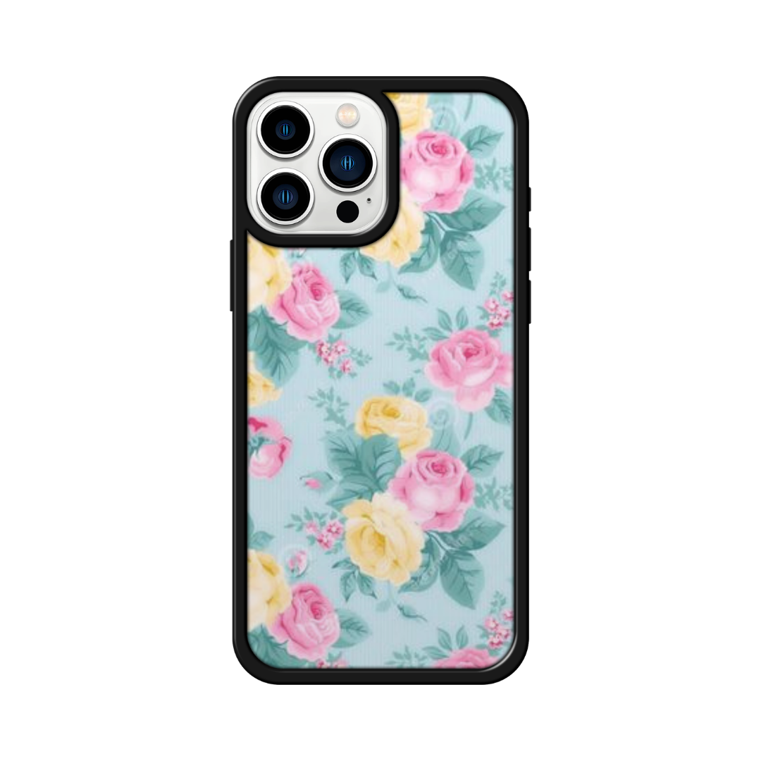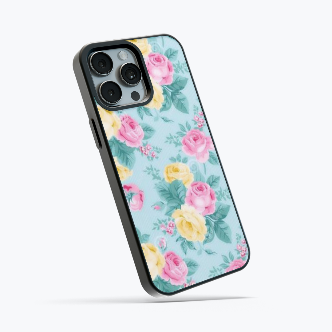Pink Yellow Roses Mint Glass Case
