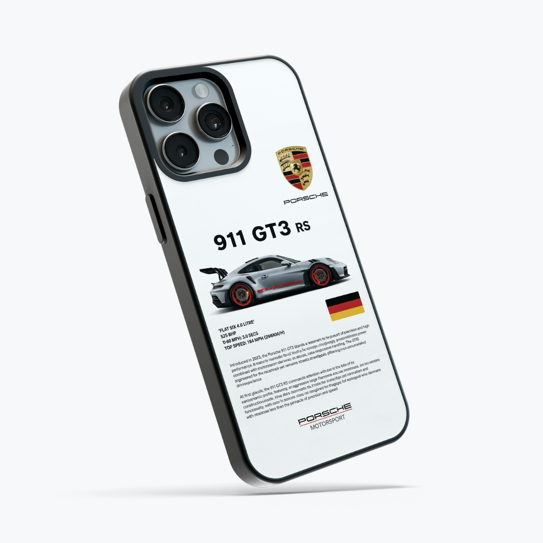 The case is made from durable tempered glass with a black silicone grip for added protection.