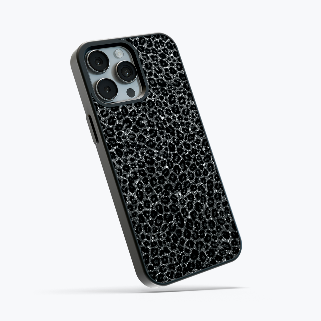 Silver Glitter Leopard Print Glass Case